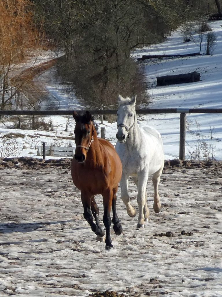 Die Freilandhaltung ist eine der angenehmsten Haltungen, die Sie Ihrem Pferd bieten können. Die Tiere haben die Möglichkeit, in ihrer natürlichen Umgebung den anbrechenden Tag und die herannahende Nacht in ihrem Ursprung zu erleben, da sie 24 Stunden täglich auf einer weiträumigen Koppel nah des Stalls leben. Täglich prüfen wir Futter und Wasser sowie den Weidezaun und selbstverständlich, ob es unseren Vierbeinern gut geht.